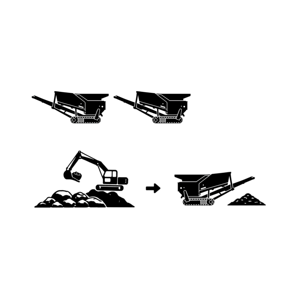 Disponujeme dvěma mobilními drtičkami, které umožňují efektivní zpracování materiálu bez nutnosti jeho zbytečného převozu. Materiál je postupně nadrcen a připraven pro další třídění nebo přímé využití ve stavebnictví.